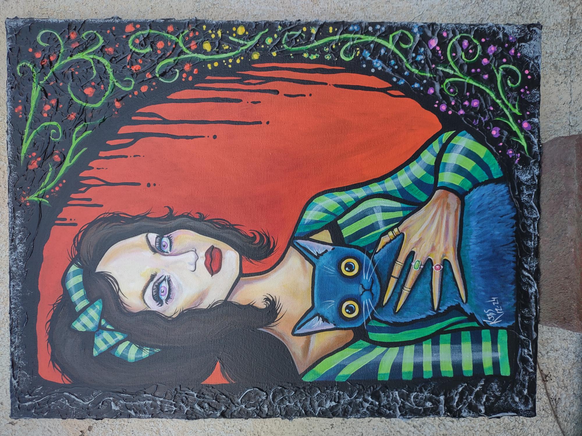 Three months of hard work. 18x24 acrylic on canvas. I used modeling paste on the sides and the border, careful, it’s pointy!!