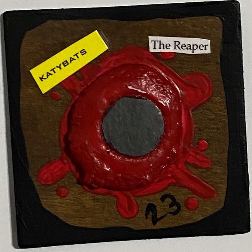 2.5x2.5 wooden kitty magnet. this one is warped, as i tried to show in the last photo. the green line indicates the unevenness while laying flat. disregard the air fryer.