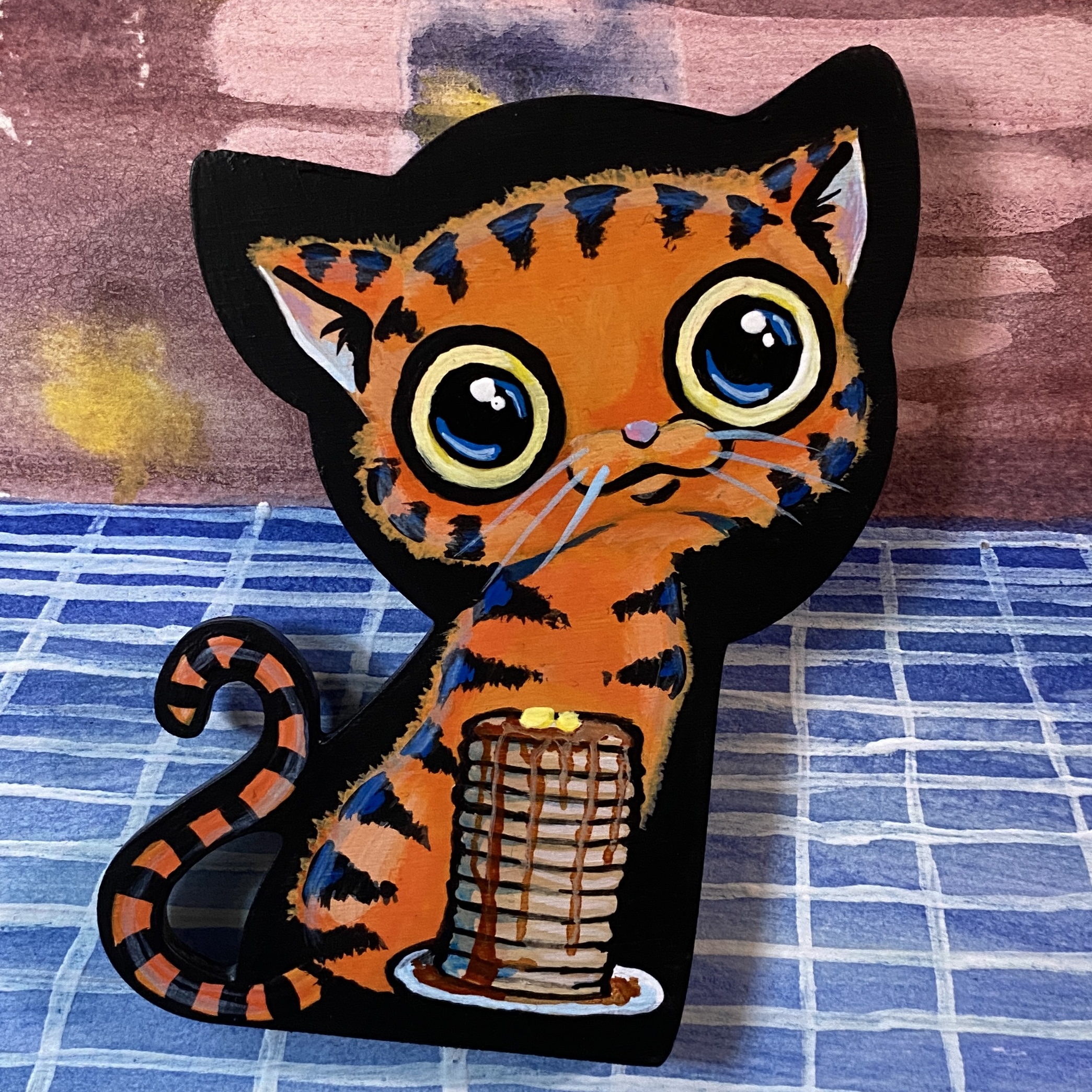 about 3 by 4 inches. wooden magnet kitty. Acrylic paint.